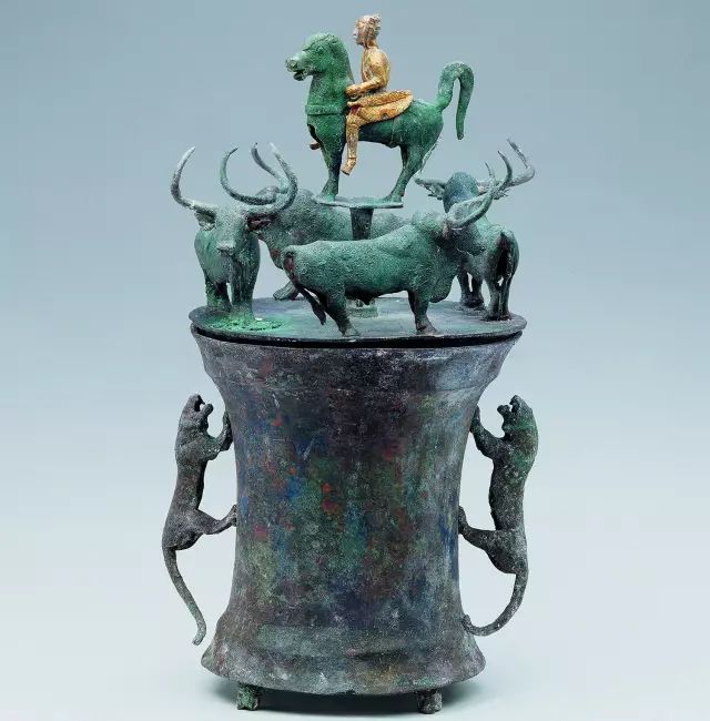 骆驼是典型的草原动物。两件出土于江西海昏侯墓的鎏金青铜骆驼形钮钟架构件,再次印证了丝绸之路上的文化交流。丝路开通后,骆驼被当作奇畜引进中原。考古人员曾在西汉昭帝的丛葬坑同中出土了30具骆驼骨架,这是目前中原地区发现的最早的骆驼实物。专家推测这批骆驼可能是西域进贡汉廷的贡品,饲养在上林苑中,供皇家驾车、骑乘或观赏。