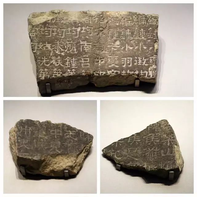 展柜里有3块不大的石碑残片——“熹平石经”残石。千万别小看这些东汉时期的石块,上面刻的可是早已失传的儒家经典《乐经》经文呢!“熹平石经”是中国历史上最早的官定儒家经本,为书法家蔡邕用标准的八分隶书体写成,故而又被称为“一体石经”,开创了我国历代石经的先河。此石经集汉隶之大成,在当时被奉为典范,对后世书法的发展影响深远。