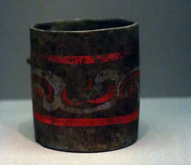 记者注意到一件西汉的漆卮(音“支”——记者注)。这件西汉的酒具,保留了当年楚国漆器的典型特点,内部是红漆,外面在黑漆上用红、黄等色彩绘出变型的凤纹和几何纹。但特别的是,在它的外底部烙印有“市府饱”“成府饱”“成市草”等文字。专家介绍说,在汉代,成都是漆器的主要生产地。这件卮底部的文字表明它是由成都市府所辖的漆器作坊生产,并反映当时漆器制作有很多道工序,而每道工序都有制作者的名字。原来,西汉时期就有了品牌意识,且产品质量就有了终身负责制呢。