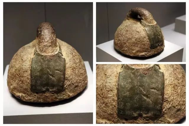 刚进展厅,就看到一个巨大的秤砣。其实它的学名是“青铜诏铁权”,是秦朝的。它的重要不在于个头大,而在于它的一侧镶嵌了一块青铜诏版,写着6行40字的篆书:“廿六年,皇帝尽并兼天下诸侯,黔首大安,立号为‘皇帝’,乃诏丞相状、绾,法度量,则不壹、歉疑者,皆明壹之”,这是秦始皇统一全国度量衡法令得以实施的直接证物。
