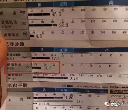 而陈意涵体脂率只有10.7%