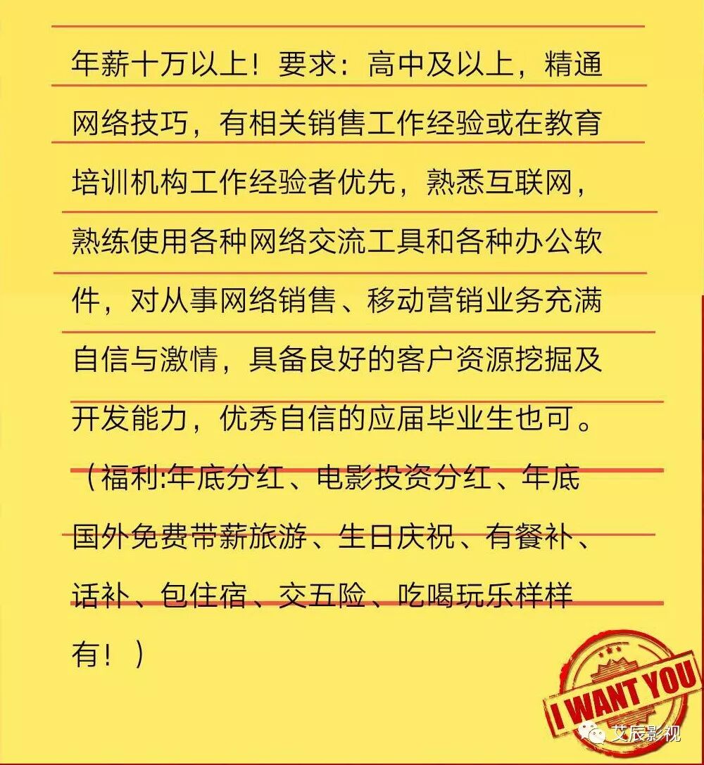 艾辰影视招人啦