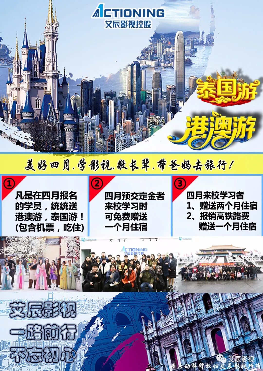 ①凡是在四月报名的学员,统统送港澳游泰国游(包含机票,吃住)