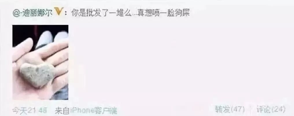 在张馨予发完秀恩爱的微博之后,李晨前女友迪丽娜尔立刻揭穿这场“骗局”。