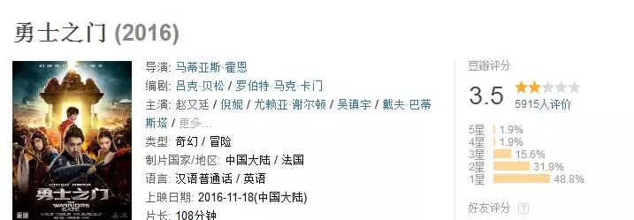 《勇士之门》创下了赵又廷电影生涯的最低豆瓣评分