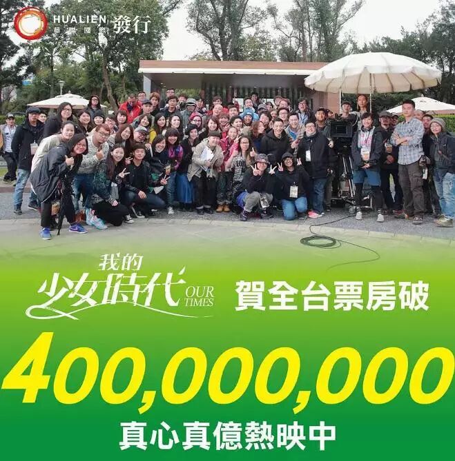 第二年,也就是2015年暑期档,宋芸桦和王大陆主演的《我的少女时代》,在台湾卖疯了,累计票房超4亿