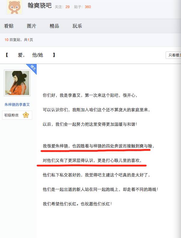 她还去过翰爽骁贴吧留言,重点句:我很爱朱梓骁,随着与朱梓骁奔波而接触到张翰郑爽!这句话再一次间接证明她和朱梓骁是有关系的。