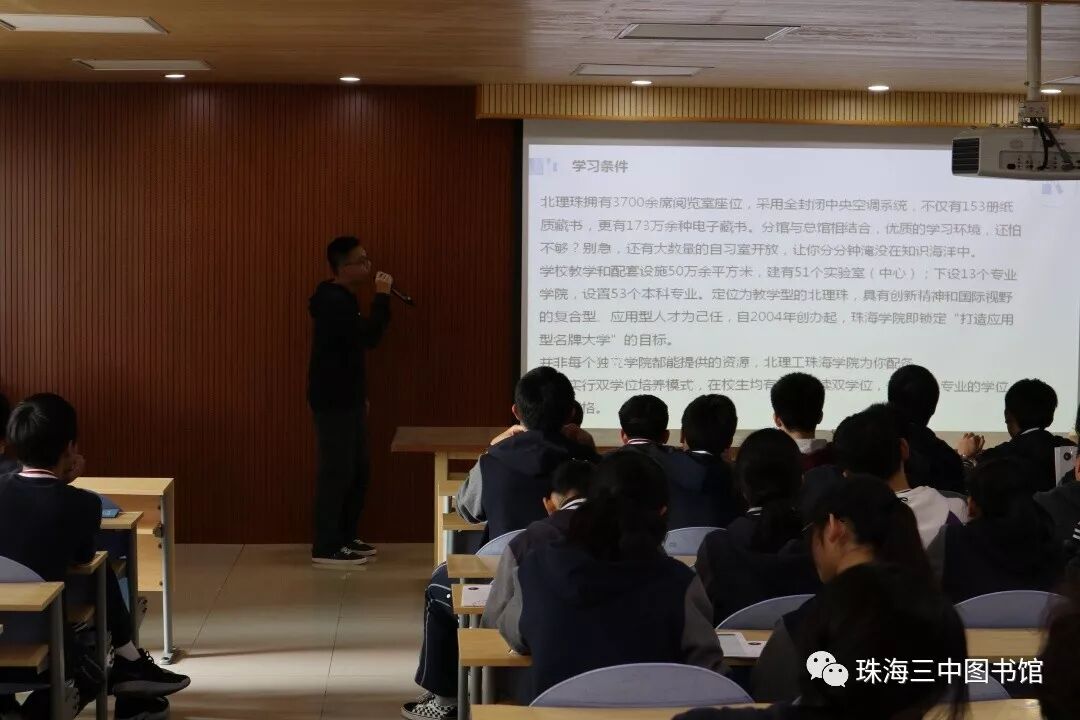 2月19号下午,桑梓珠途小分队同陈年雄老师、梁小兰老师展开交流,并受陈年雄老师之邀进班开展特别班会。在熟悉的教室里,我们采用演讲方式,并辅以多样性的视频和PPT,为心怀梦想的学弟学妹们介绍了北京理工大学珠海学院的校园环境、师资力量、招生政策、专业特色、校园生活等,并与学弟学妹们进行了一对一的问答交流。与此同时,我们还分享了自己的学习经验和减压方法,为他们指点迷津。看着那一双双对未来充满渴望的眼神,我们不禁又想起了当年的我们,也是这般心无旁骛,一往直前。