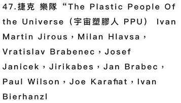 就连1968年成立的捷克乐队宇宙塑料人居然都在这份名单之中(他们曾深度参与过政治),真是不敢想象。