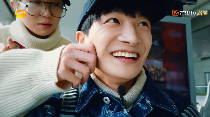 不动嘴,动起了手,大庭广众之下直接去捏周深的脸。