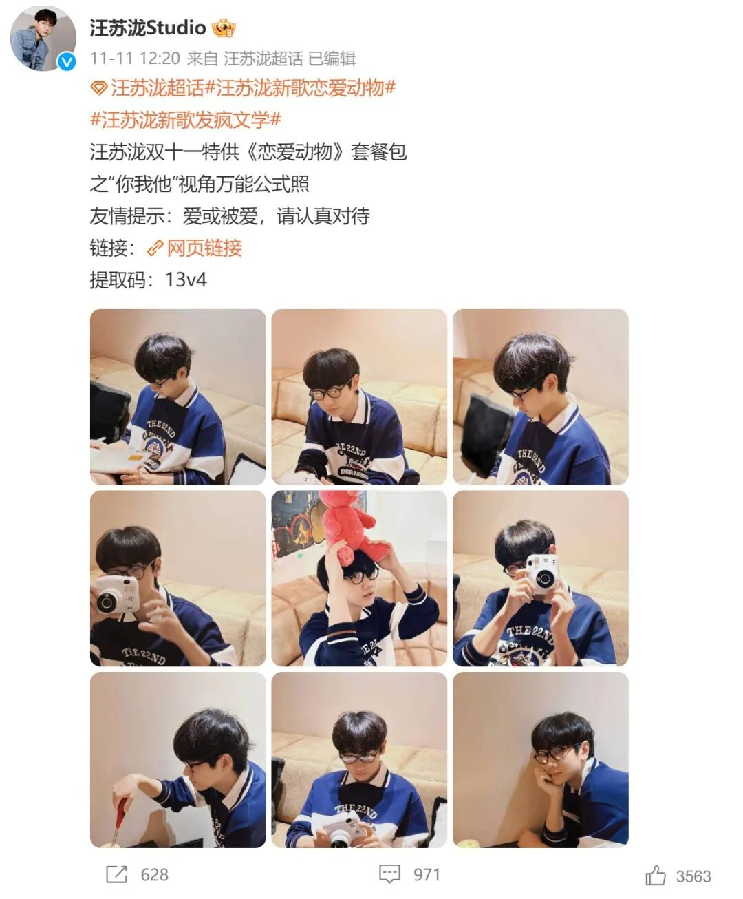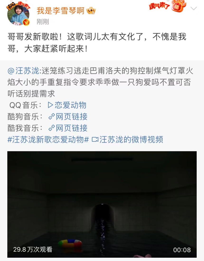 恋爱社交推理类真人秀《心动的信号》专业对口为《恋爱动物》打歌,此前汪苏泷常驻这个综艺的第五季,作为观察室的心动侦探通过推理,说出自己的观察与表达。