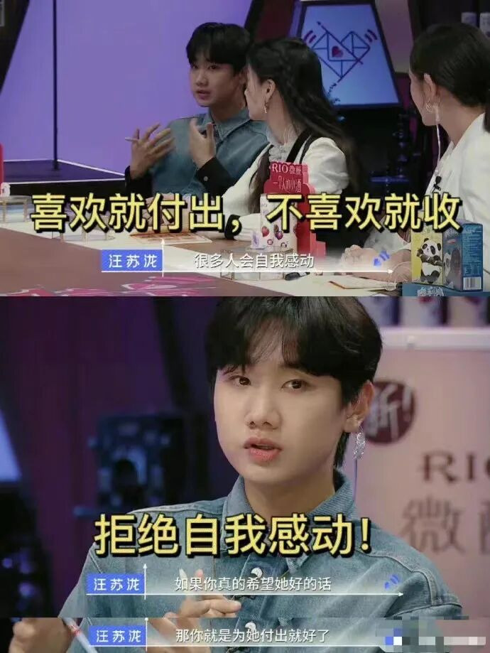 在提到喜欢与感动的区别是,汪苏泷大胆开麦:很多人会自我感动,如果你真的希望她好的话,那你就为她付出就好了。