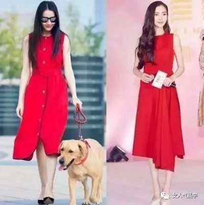 红色的长裙,迪丽热巴搭配黑色的尖头高跟鞋,中分直长发,墨镜遮面,很优雅,也很迷人!baby搭配裸色的厚底高跟鞋,侧分大波浪卷发,优雅大气,很吸引人!美艳程度不分上下。