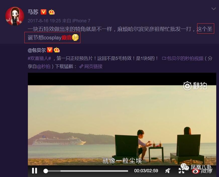 网友扒出马漂亮微博提到想要圣诞节cos小麋鹿。