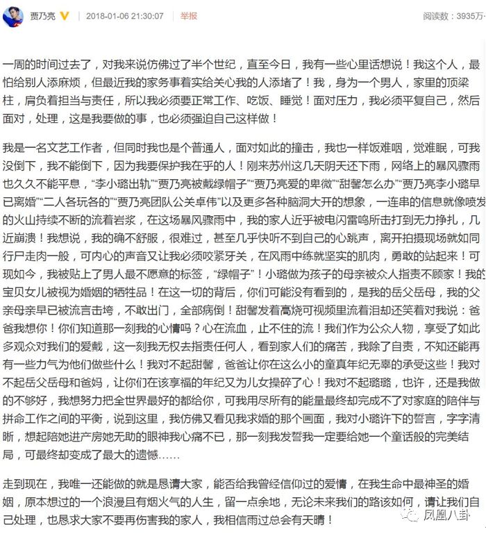 李小璐夜宿门的瓜真是一波接着一波。他在忍了一周之后发了千字长文说了句被贴上男人最不愿接受的标签。