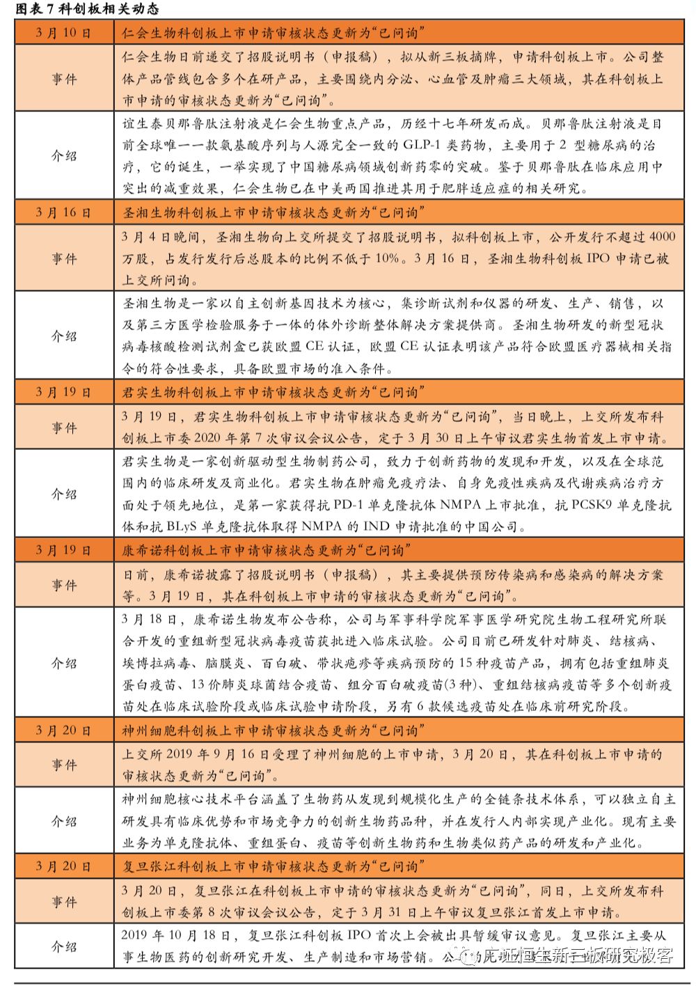 近一个月,仁会生物、圣湘生物、君实生物、康希诺、神州细胞、复旦张江科创板上市申请审核状态陆续更新为“已问询”。