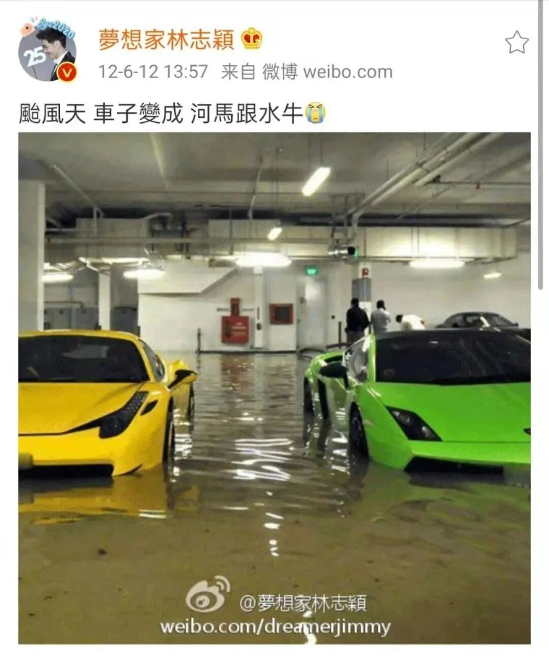 他发照片晒豪车,发牢骚说车子被淹,却被人发现,图片是从网上找的;