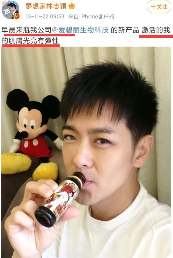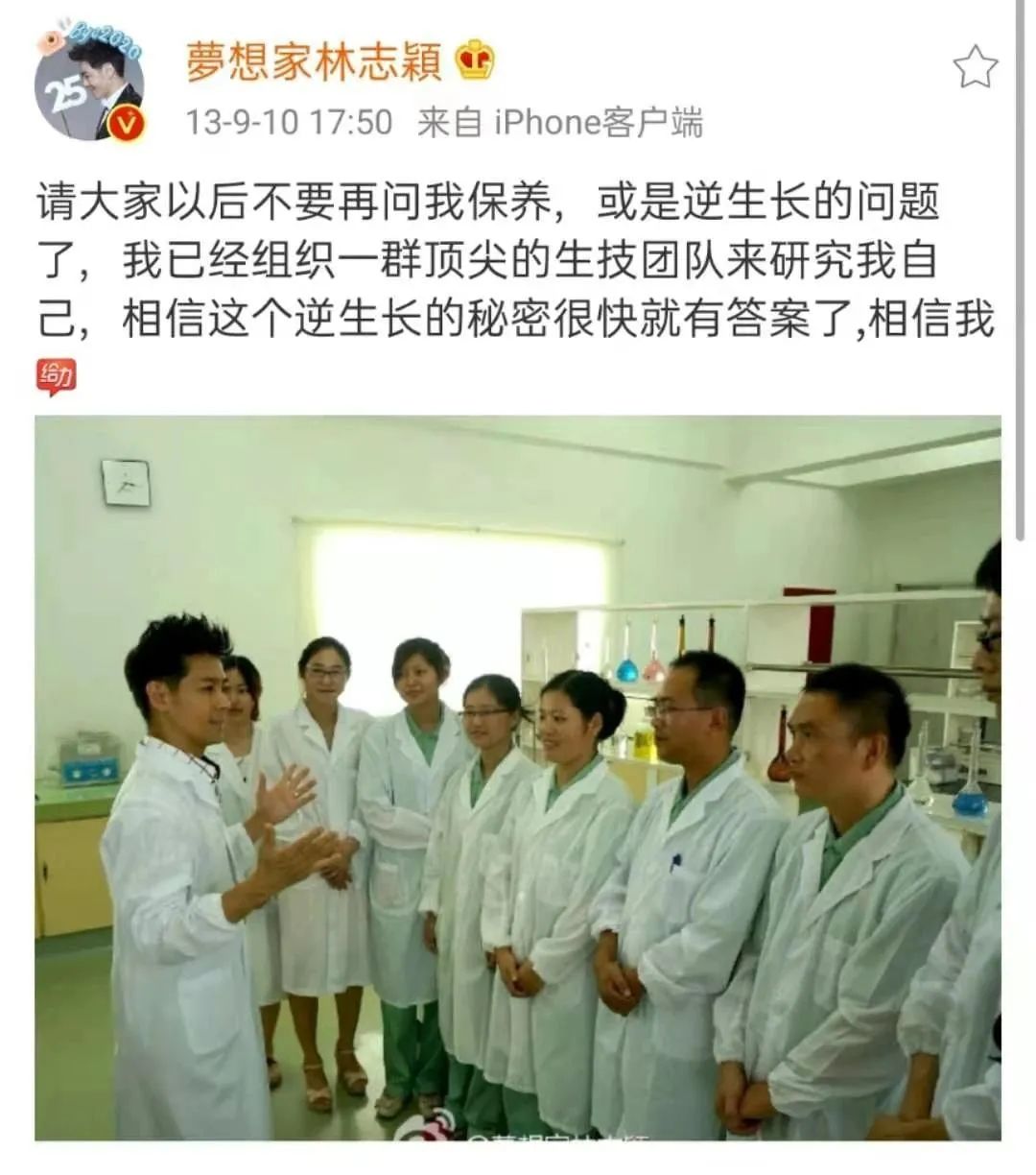 不久,自称“林博士”的林志颖就推出了一款号称可以“永葆青春”的保健饮料。