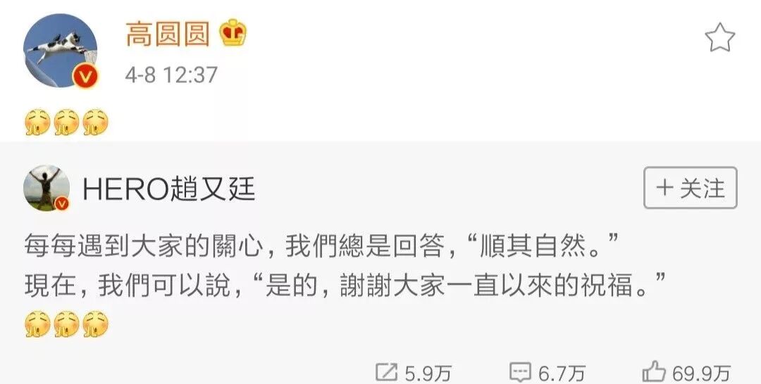 淡出荧屏的高圆圆每年少有的几次微博更新,还大都与另一半有关 / 高圆圆微博