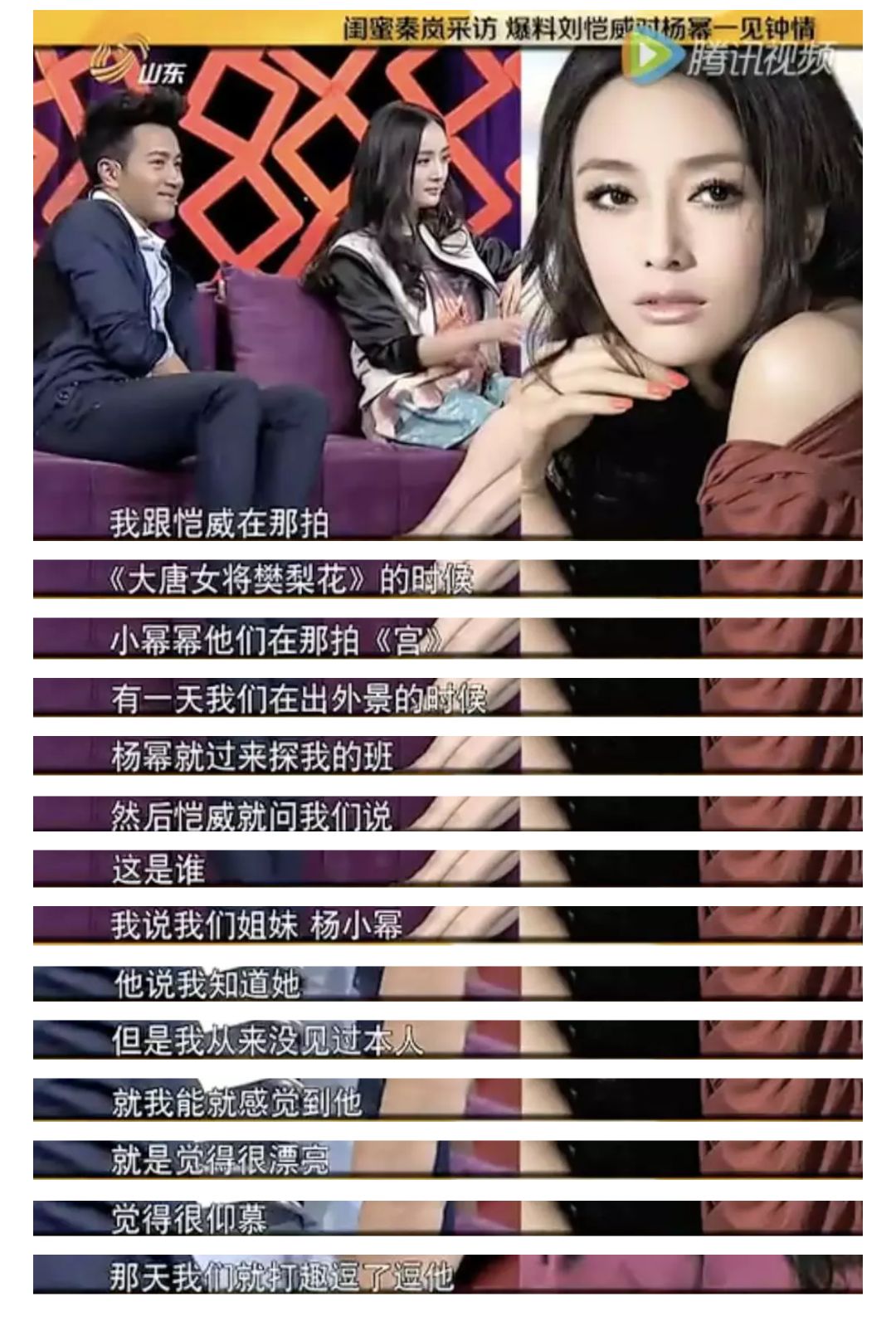 刘恺威曾经在访谈里说,作为演员,他们俩的区别是,他更艺术性,杨幂更商业化,杨幂直接表示不同意。