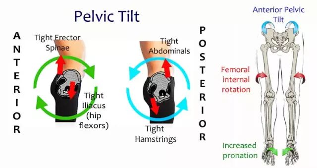 最右图:比如骨盆明显前倾时,常伴有髋关节内旋,足内翻,调整时常从调节髋开始,多方面考虑。