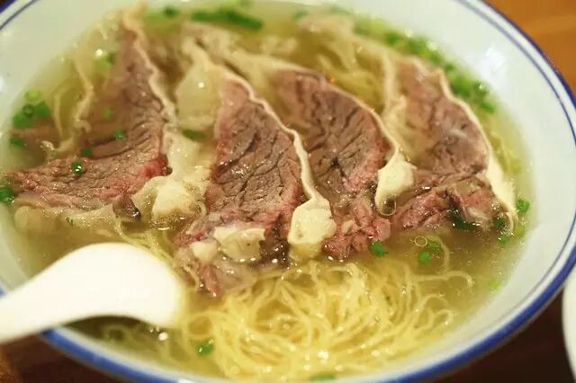 清汤牛腩面。新鲜的清汤,吃面前一定要先喝一口汤,让汤的香味沾满口腔。