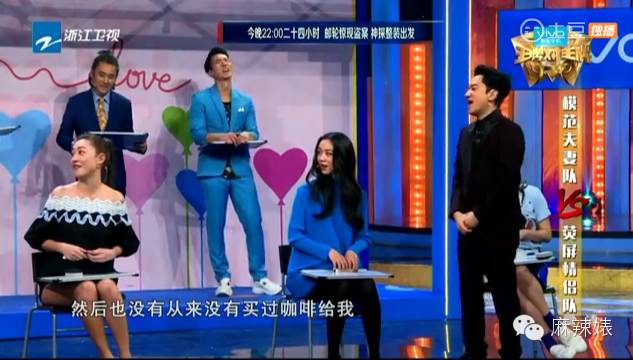 然后应采儿就拆台,吃醋说,吴秀波又不是谁都给买咖啡,自己和他合作的时候也没有给自己买过咖啡。