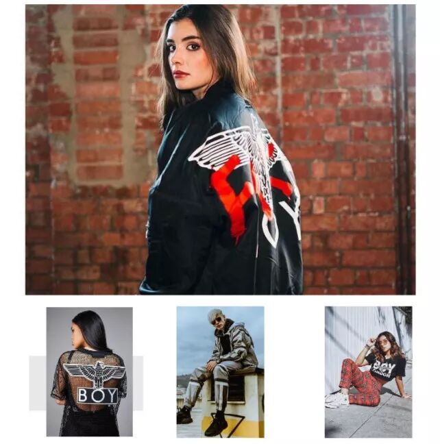 相信在你生活的城市,也时常可以见到它大大的黑色背景下“鹰”味十足的标志。和品牌一样,喜欢它的人也都是个性鲜明之辈,Rihanna,Natalia Kills,Kanye Wes,GD都曾上身过Boy London。