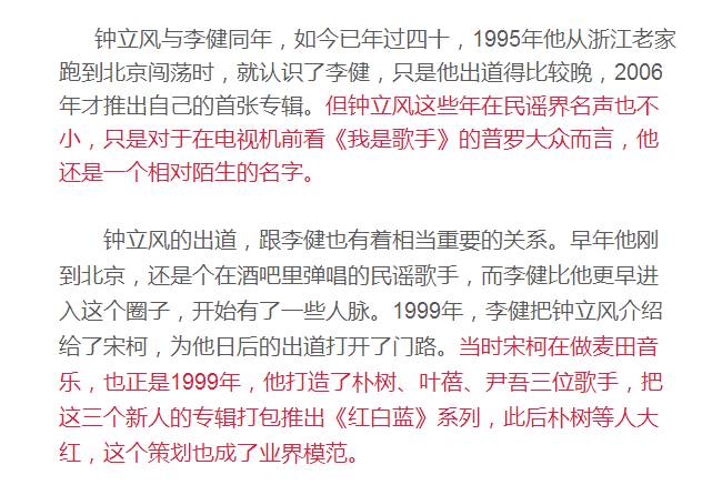 这些都是李健十分欣赏的音乐人,他希望把这些声音介绍给大众,其中“推广力度”最大的,就是跟他相识20年的“好基友”———钟立风。此前,李健已经不止一次在采访中说过,他很羡慕钟立风,羡慕他源源不断的创作力,更羡慕他能放下一切,去自己想去的地方。