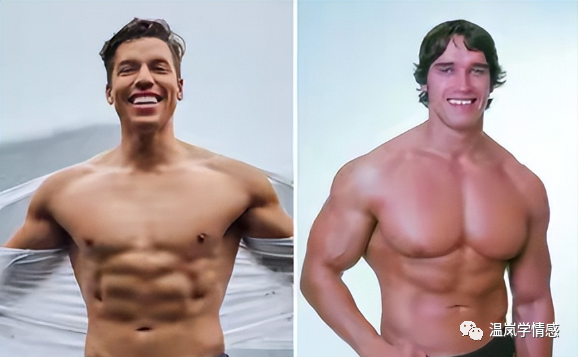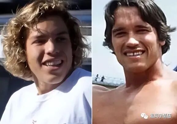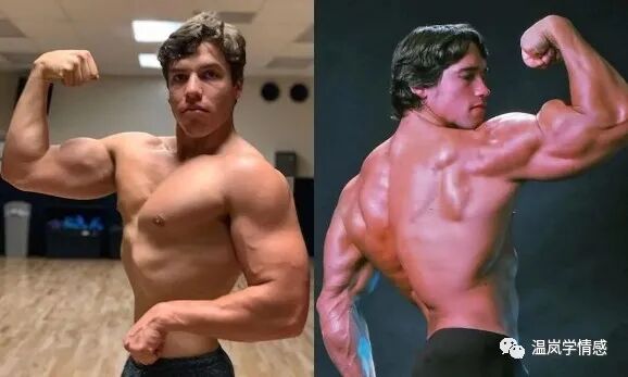 在曾经的健美冠军的一对一辅导下,约瑟夫的健身效果很不错。把他的照片和年轻的施瓦辛格放到一起,俩人如出一辙!