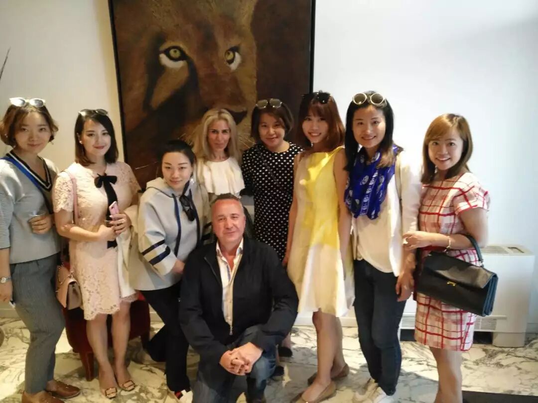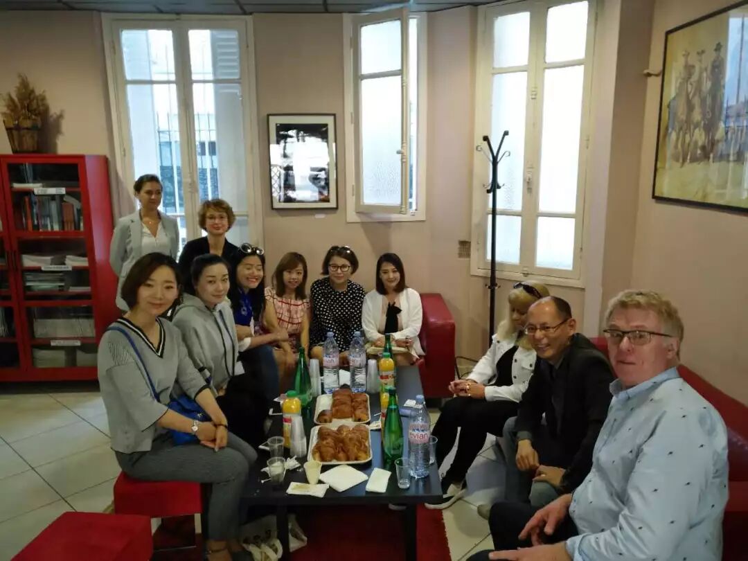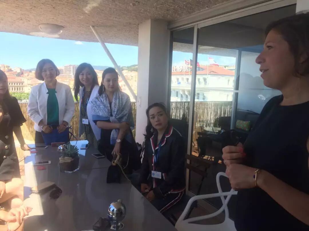 ▲考察团成员与意大利电影人在戛纳电影市场交流合影