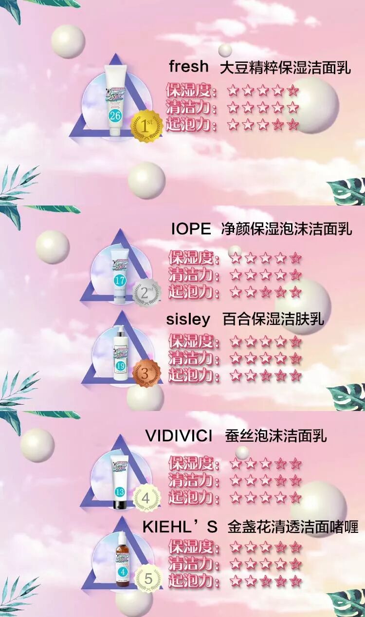 节目组从清洁保湿起泡方面评选出了前五名的洁面。