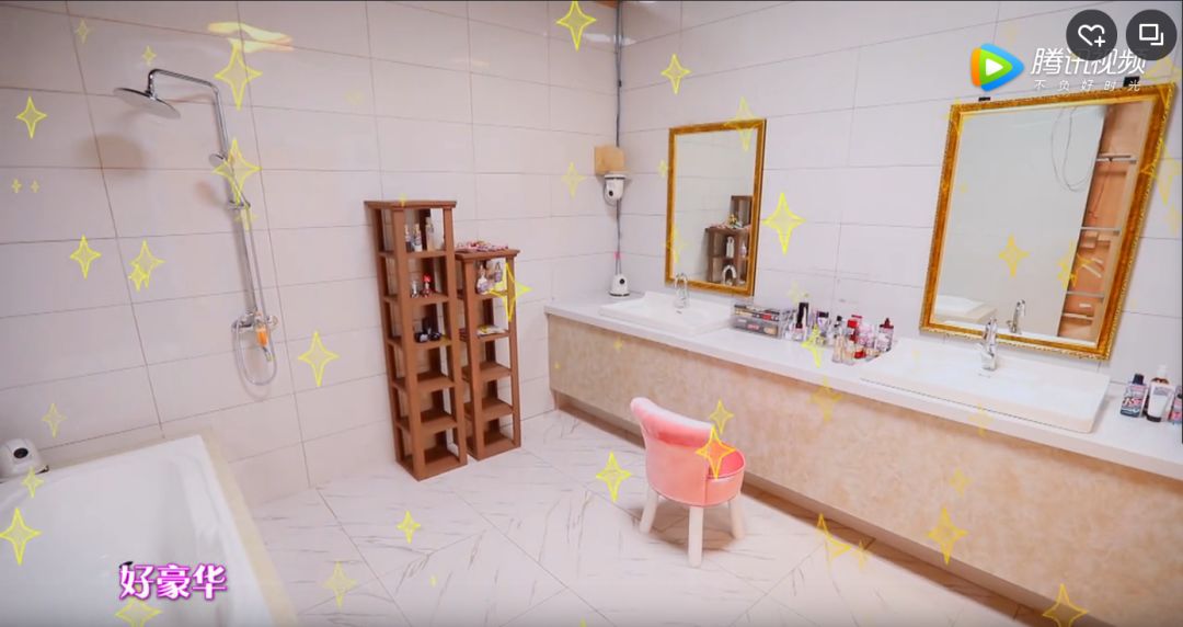 节目组在现场按照1:1的比例,直接还原了张嘉倪的浴室。