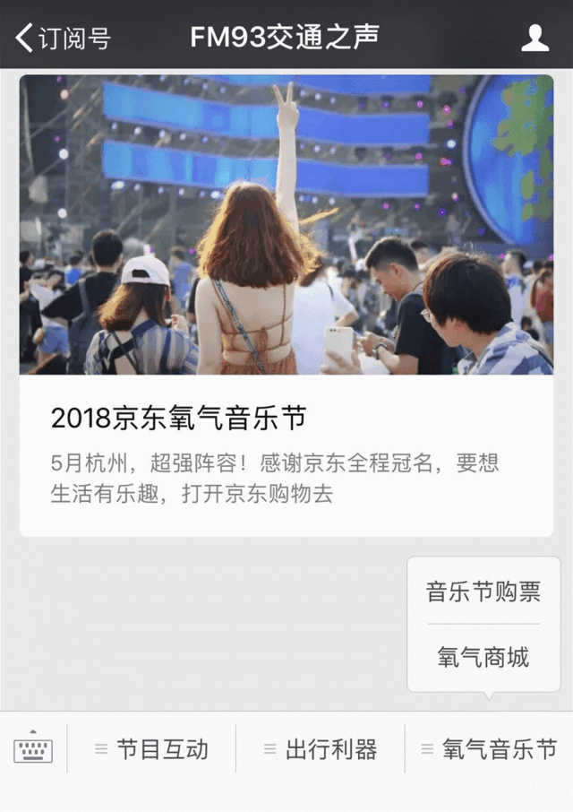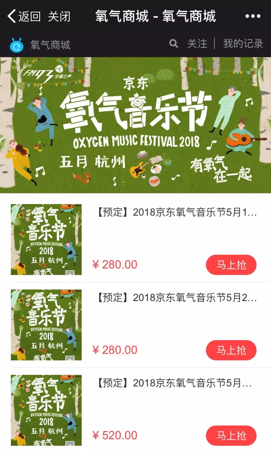 关注FM93交通之声官方微信“hifm93”,点击“氧气音乐节”进行预订