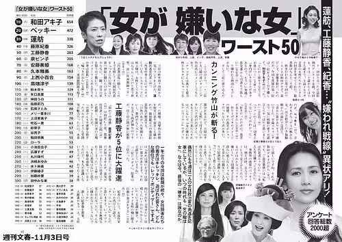 也因为木村拓哉,工藤静香多年来一直在“我最讨厌的女性”榜单里名列前茅。