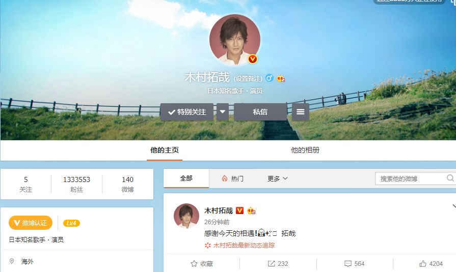 收视下降、颜值下跌、SMAP解散,木村拓哉在中年时又一次卷入舆纷争之中。他真的跌下神坛了吗?未必。毕竟他首次开微博,不到一天,粉丝量就破了60万。现在直接一百三十多万,留言转评量也很多。