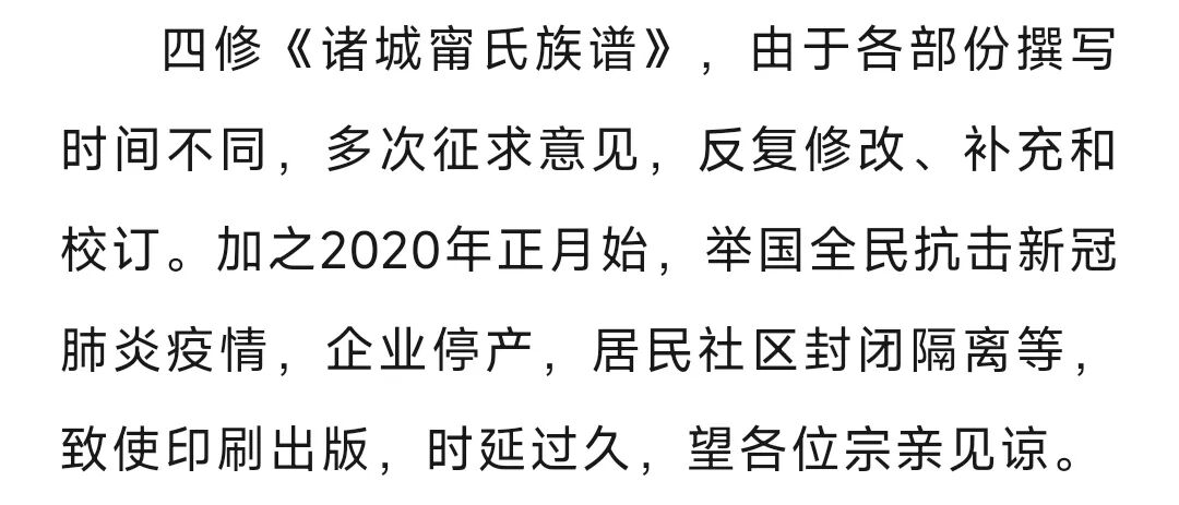 四修《诸城甯氏族谱》,已于 2018 年12 月编纂完成, 2020 年出版发行。现将有关内容摘要如下: