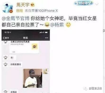 就在今天早晨,马天宇还发博为杨紫拉金鹰女神的票,并配文称:你给她个女神吧,毕竟当红女星都自己亲自拉票了。