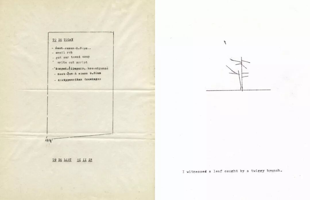 1日 左:待做事项表 右:我目击到一片叶子被树枝卡住
