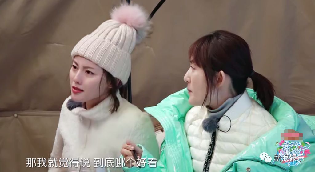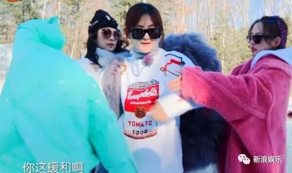 谢娜一边说话一边穿章子怡借给她的棉袄,有点顾不过来,张嘉倪也是主动帮忙。