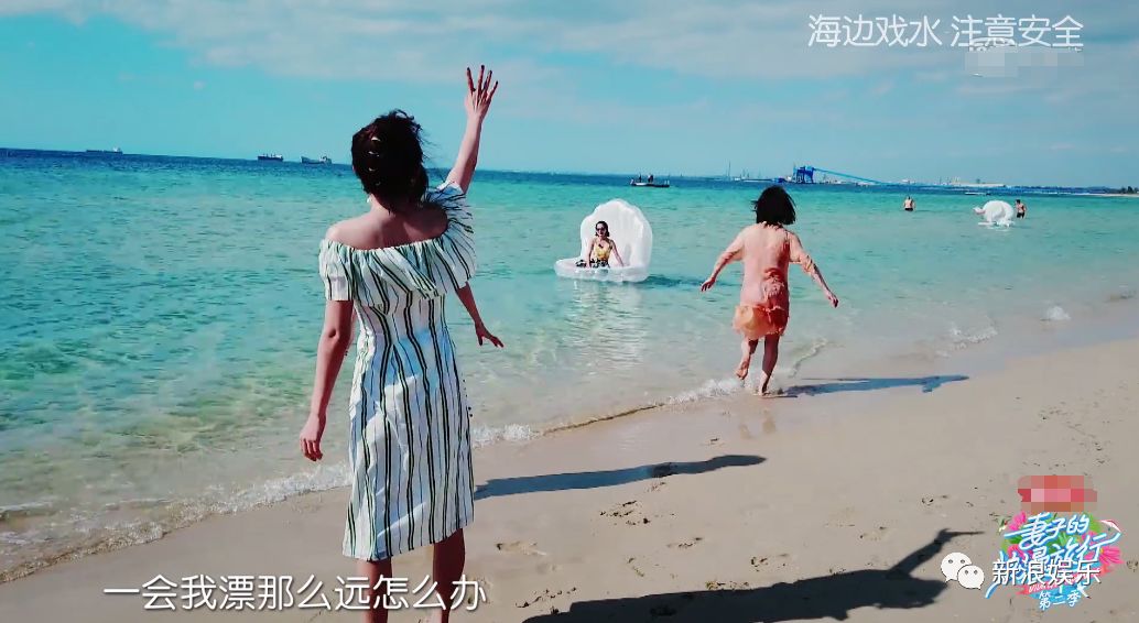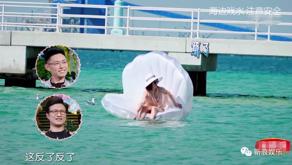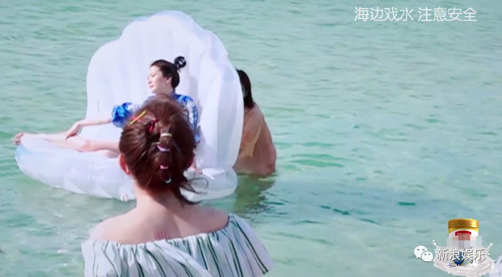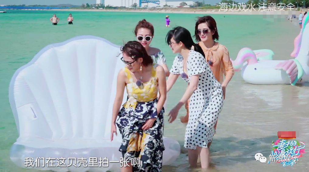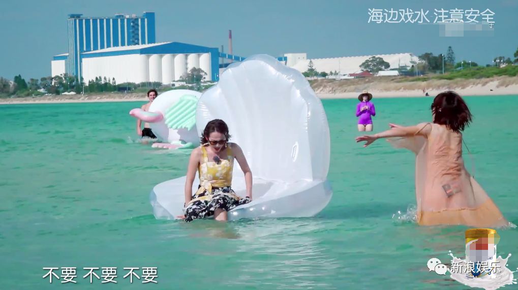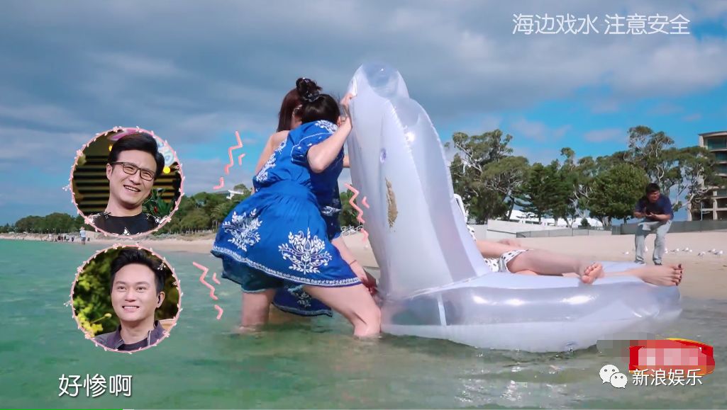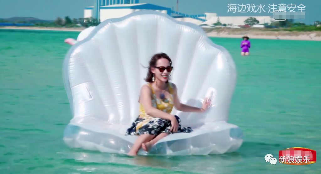 下一个准备玩的是章子怡,吸取了前面张嘉倪的教训,袁咏仪和谢娜就在后面扶着,防止“大贝壳”再次飘走。