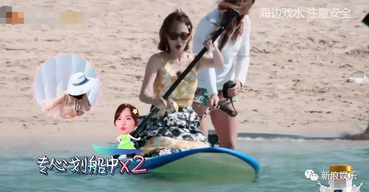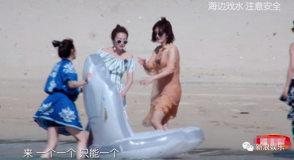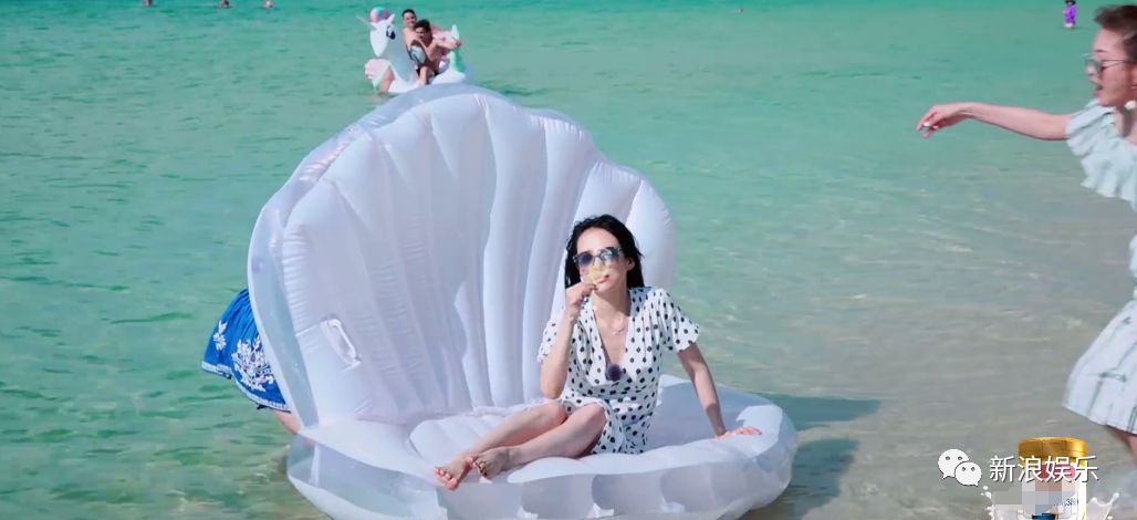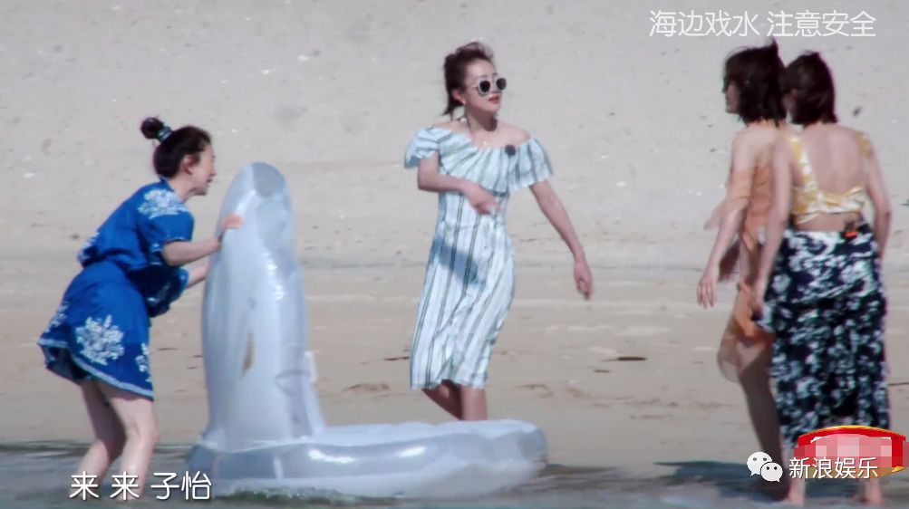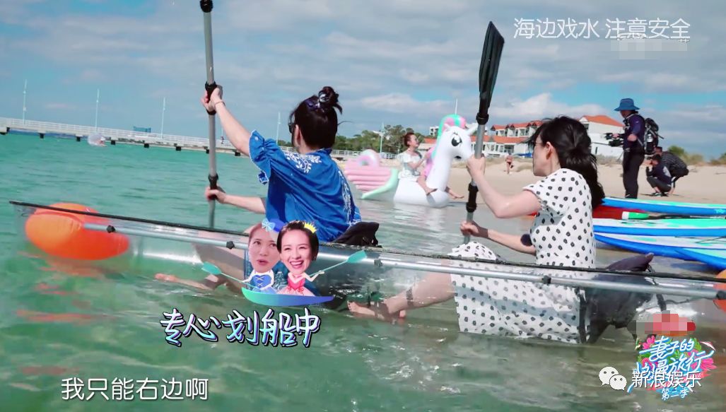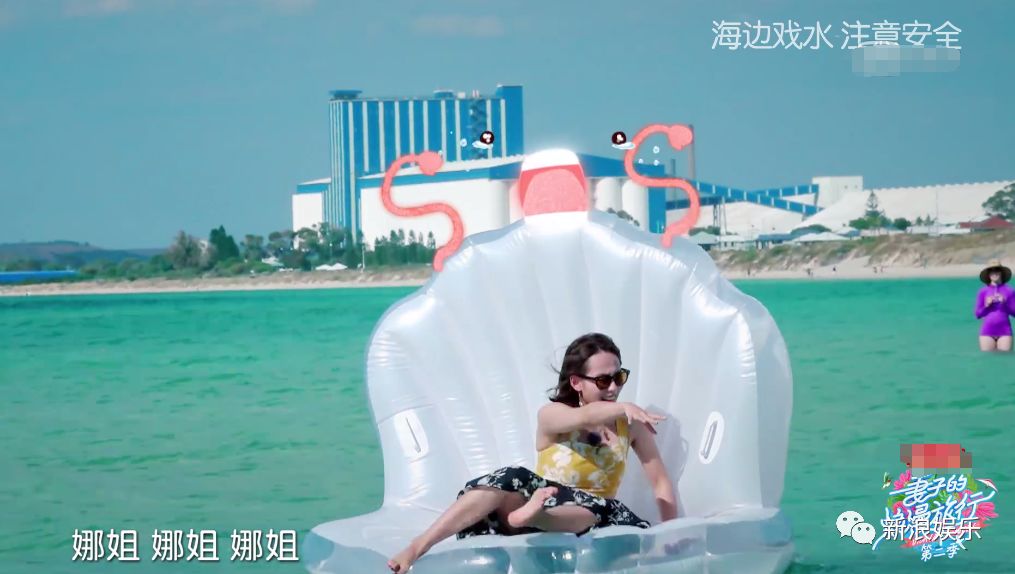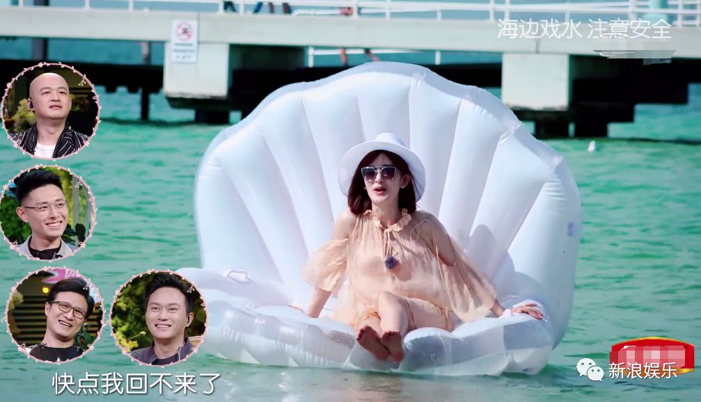 下一个准备玩的是章子怡,吸取了前面张嘉倪的教训,袁咏仪和谢娜就在后面扶着,防止“大贝壳”再次飘走。