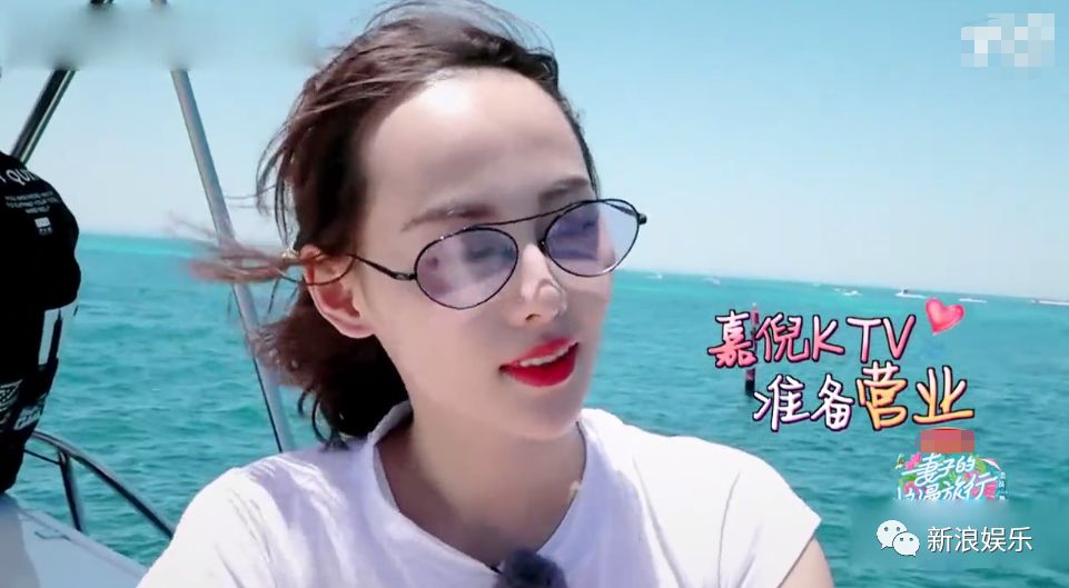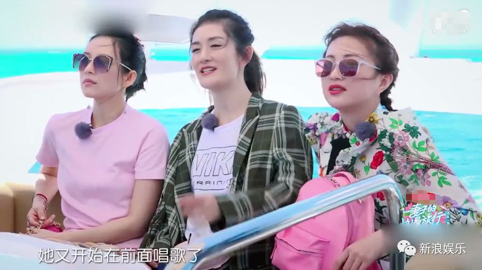 还有一次一行人出海,其他人在聊天,而张嘉倪则自己在船头唱歌。