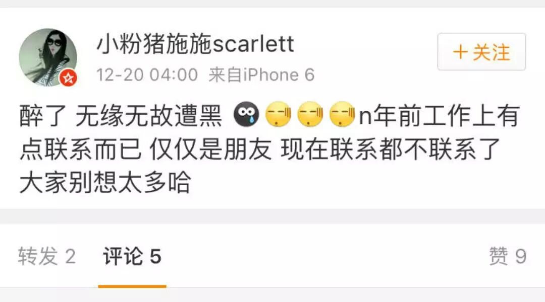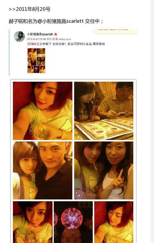 不过,这个图片中的女主人公“小粉猪施施scarlett”今天否认了曾与赫子铭有一段情:“醉了,无缘无故遭黑。n年前工作上有点联系而已,仅仅是朋友,现在联系都不联系了。大家别想太多哈 。”