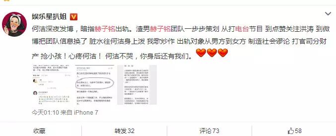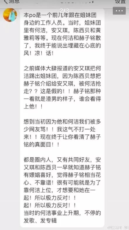 微博上的爆料号也开始力挺何洁,称赫子铭炒作、往何洁身上泼脏水。