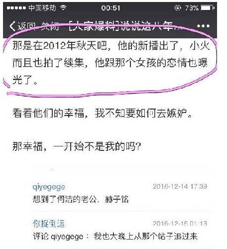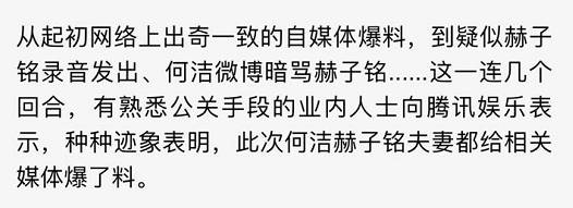 至于这么大规模的放料,有业内人士称,双方都向媒体爆了料(何洁有没有爆料不知道,但是赫子铭的十有八九是自己曝的)——