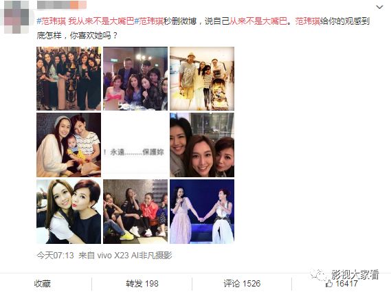 其实网友们说这话也是有原因的,范玮琪不止是这一次让人们认为嘴巴大,在之前张韶涵家里出现问题的时候,她也是没有帮助好姐妹说话,而是进行了落井下石职责张韶涵被网友们谴责,也是那个时候被冠上“塑料姐妹花”的头衔,后来人们也看到并不是张韶涵的问题。