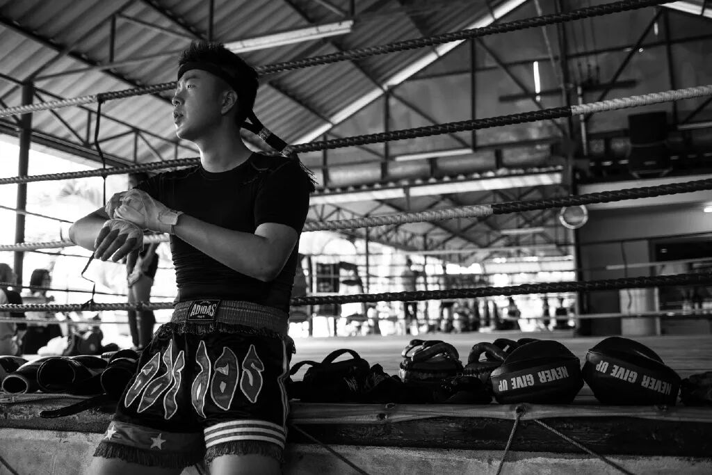 2.含胸收下鄂,快速出摆拳,保持呼吸和出拳节奏的配合