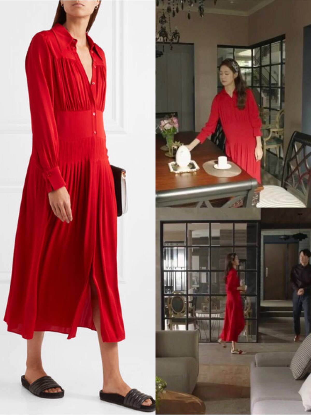 产品名:Josie pleated stretch-silk crepe de chine midi dress