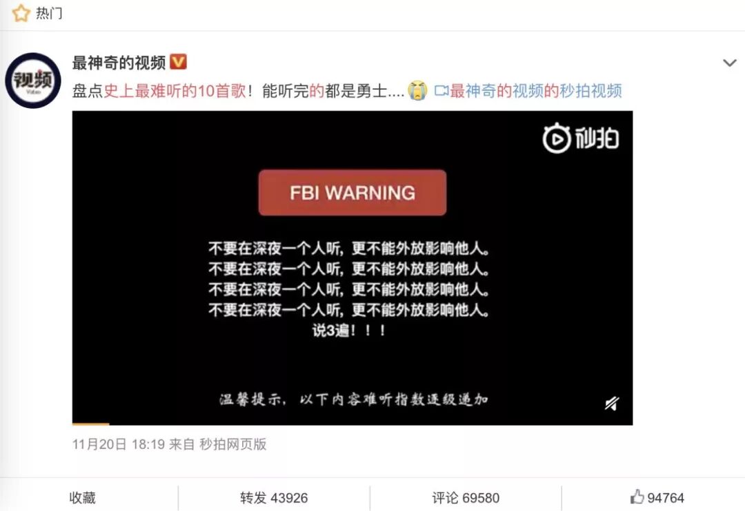 打开微博,看到热搜榜上有一个话题:史上最难听的十首歌,好奇心强的我立刻点开看了一下。